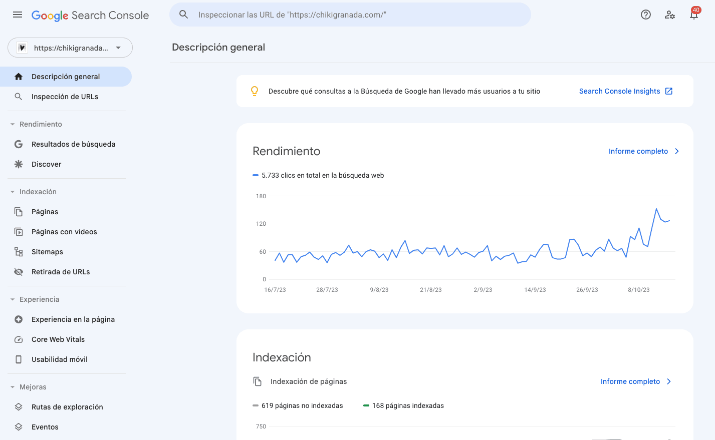 Los resultados en tu panel de Google Search Console no son instantáneos. Espera al menos 24 horas hasta ver las primeras analíticas de tu página web.